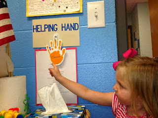 Eleanor was very excited to tell me about how she was Mrs. Long's Helping Hand for the day. Apparently it is a big job to be the class Helping Hand. According to Eleanor, you get to be the line leader, open and close the door, and run special errands for Mrs. Long to the Preschool office. She was so very proud to tell Mommy all about it!